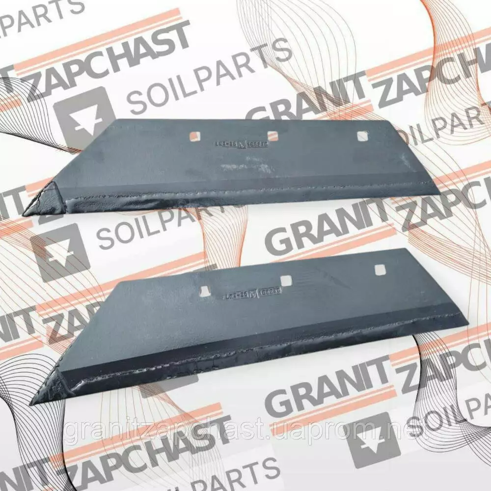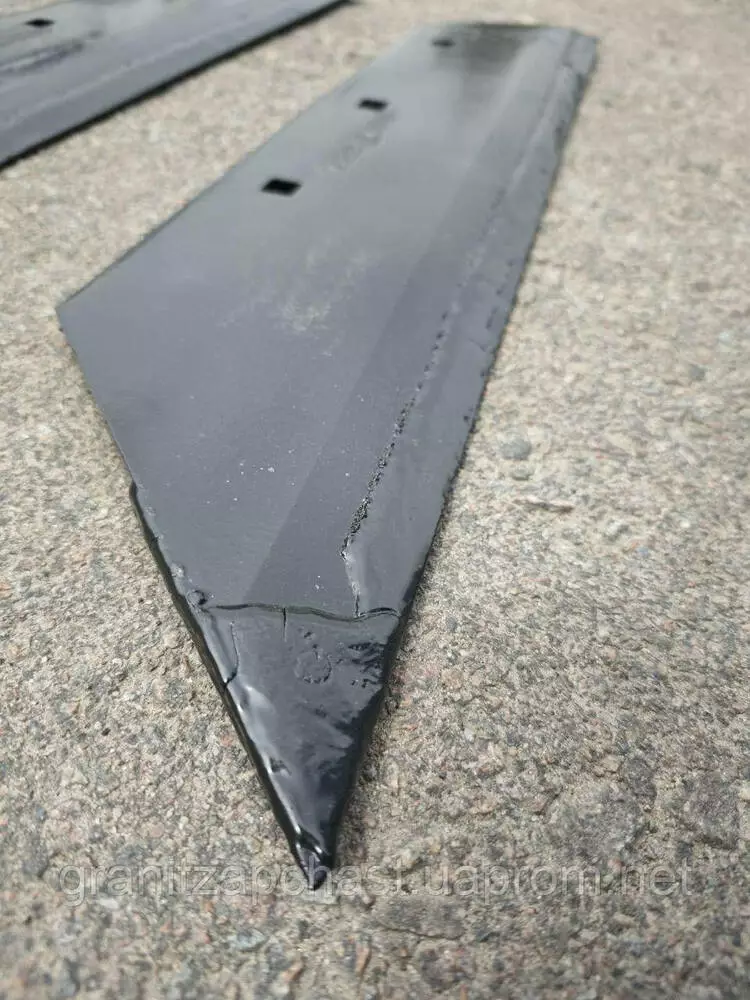 Уникальная двусторонняя наплавка кончика: Главное преимущество этого лемеха – это специальная износостойкая наплавка на кончике, выполненная с обеих сторон. Это инновационное решение многократно повышает устойчивость рабочей кромки к абразивному износу, который является основной причиной выхода из строя лемехов. Двойная наплавка обеспечивает: